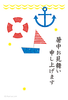 立体的な夏モチーフと波 暑中お見舞い ポストカード イラスト素材サイト イラストareira Postcard Template